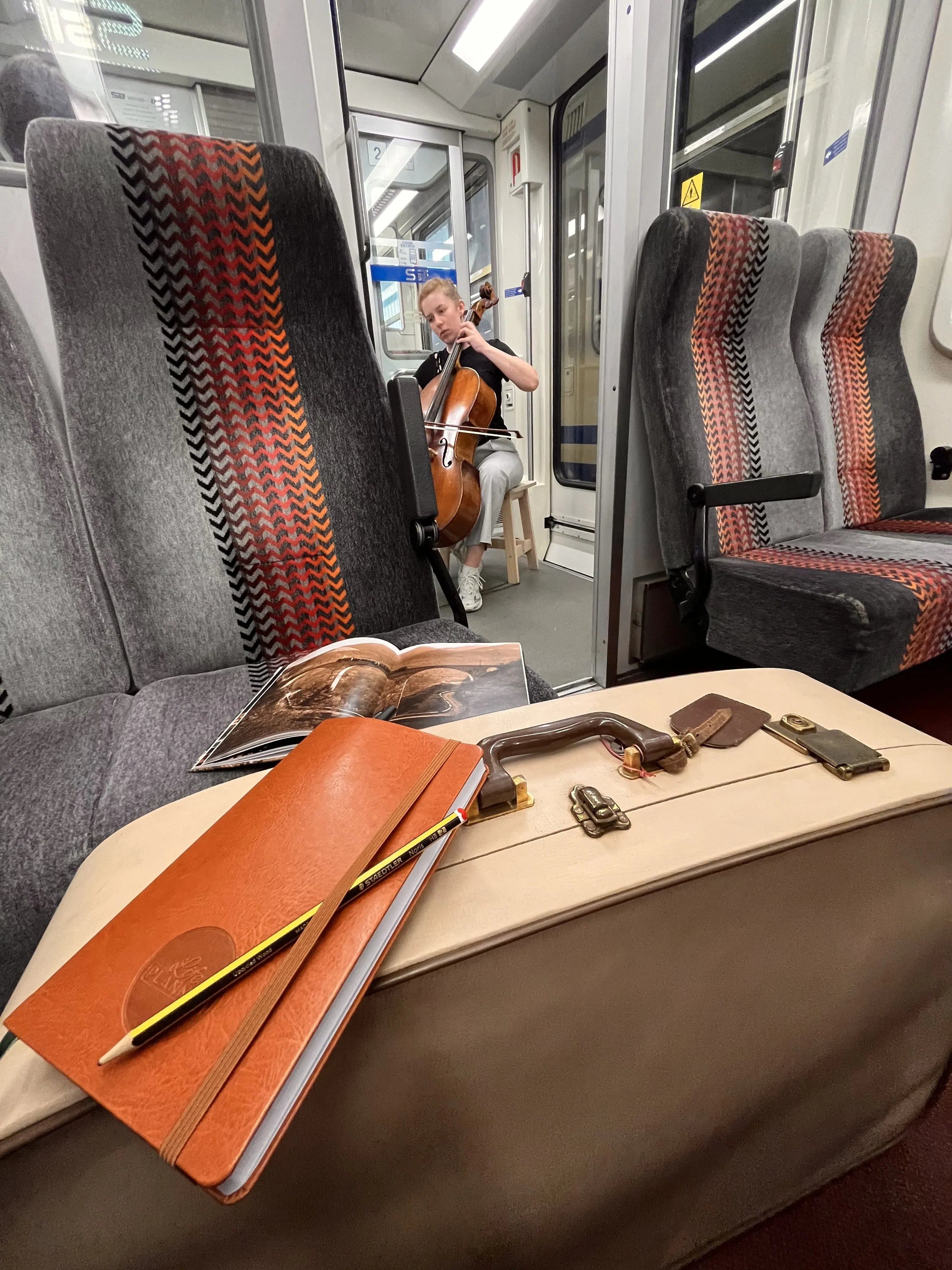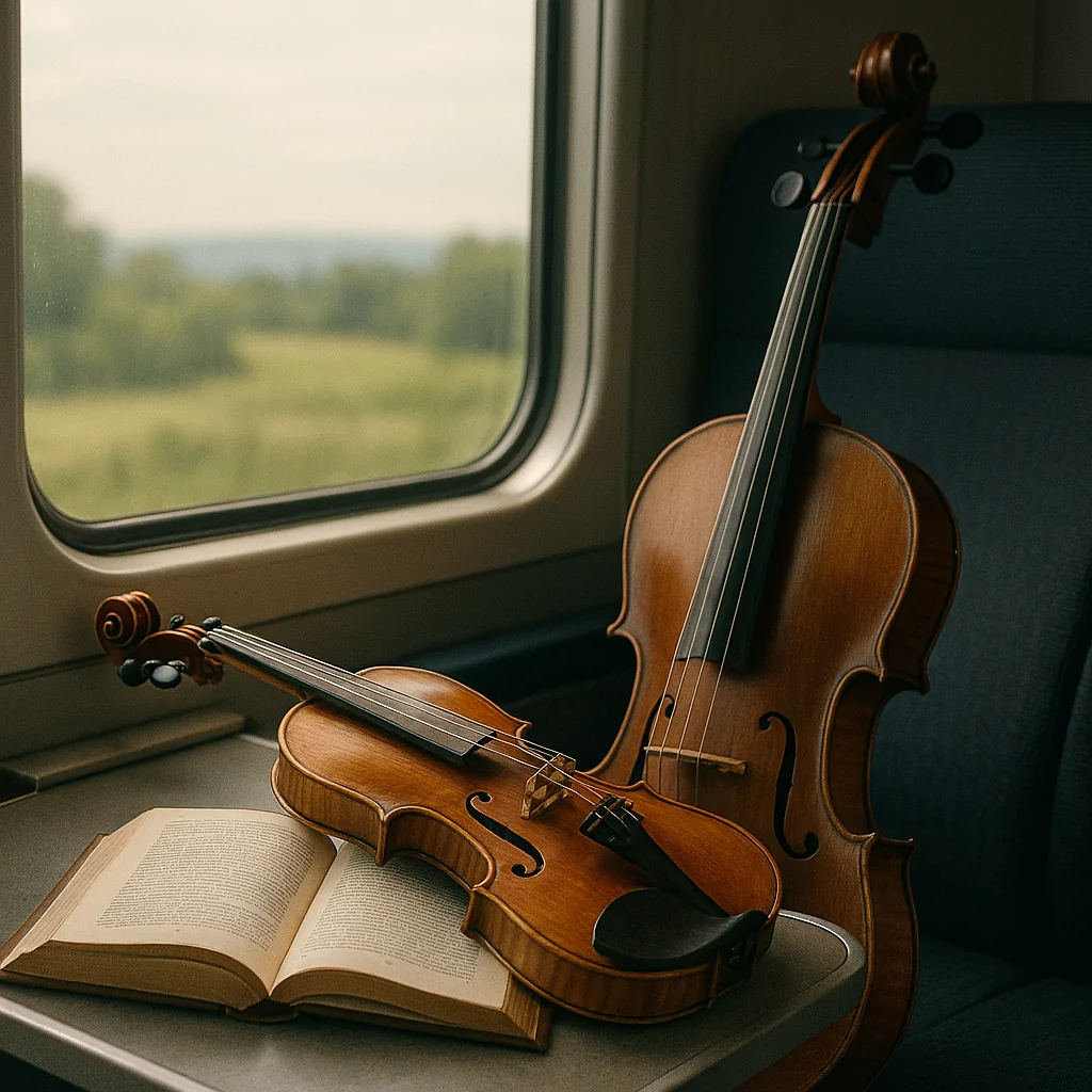 Ad ogni sosta, le melodie di violino e violoncello si diffondono tra i vagoni, si intrecciano nel paesaggio, tra boschi, ponti e scorci silenziosi, creando un’atmosfera immersiva.
